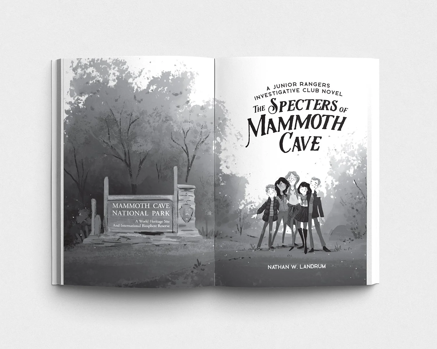 Brief: Design a series of location-based mystery novels for kids, sold in National Park bookstores. Each book is set in a real park, encouraging readers to visit actual landmarks to follow the plot. The visual goal was to create an adventurous aesthetic that connects the books as a set, motivating children to explore new parks and continue the series.